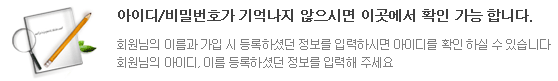 회원님의 이름과 가입 시 등록하셨던 정보를 입력하시면 아이디를 확인 하실 수 있습니다